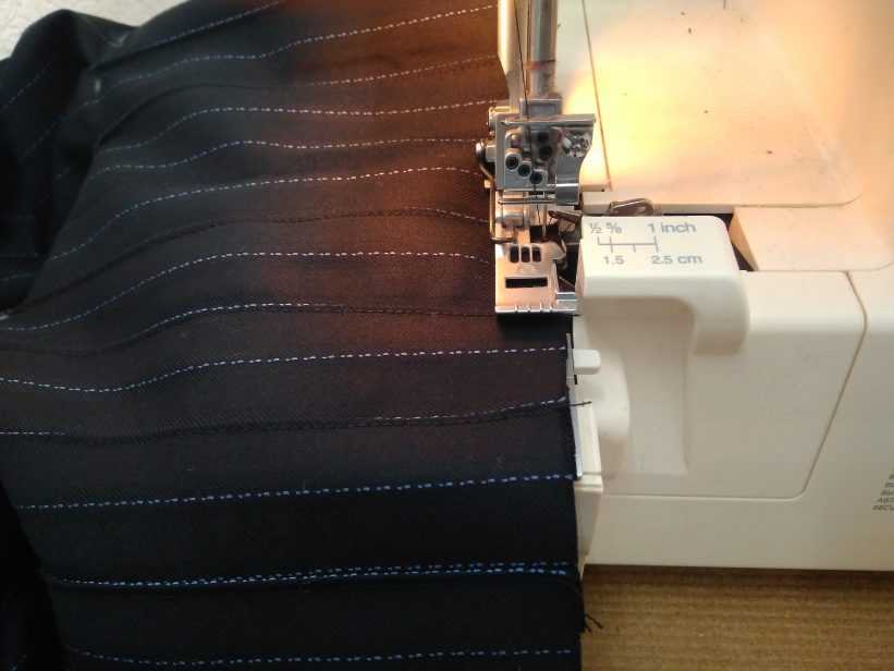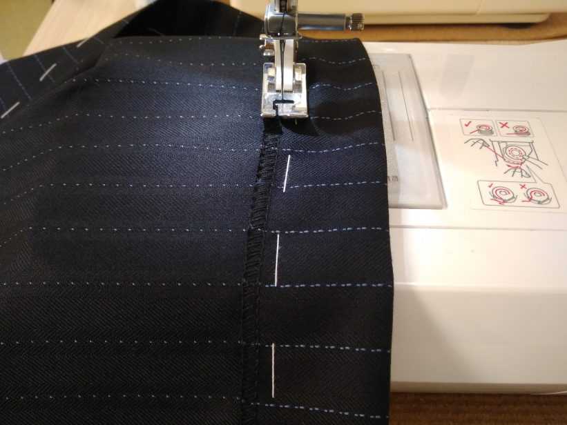 13. Пришиваю подгибку по низу на машинке, строчка проходит рядом с оверлочной.