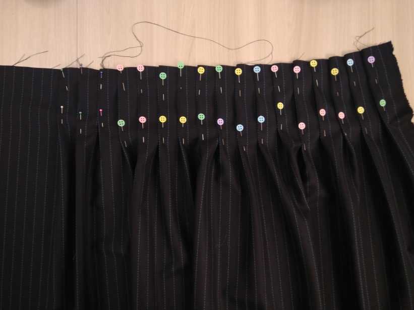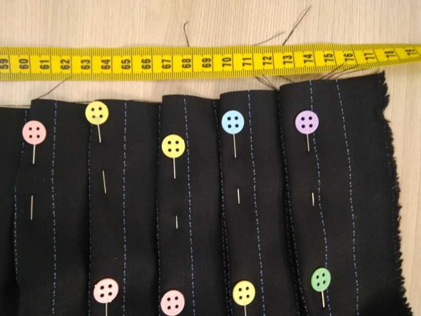 Полученную ширину раскладывайте на ровной поверхности и, вооружившись линейкой, приступайте к разметке. Расчет такой: чтобы сделать одну складку, ткань надо сложить в 3 слоя. Ширина 1 обычно составляет от 3 до 7 см, соответственно, глубина получается 6-14 см.
