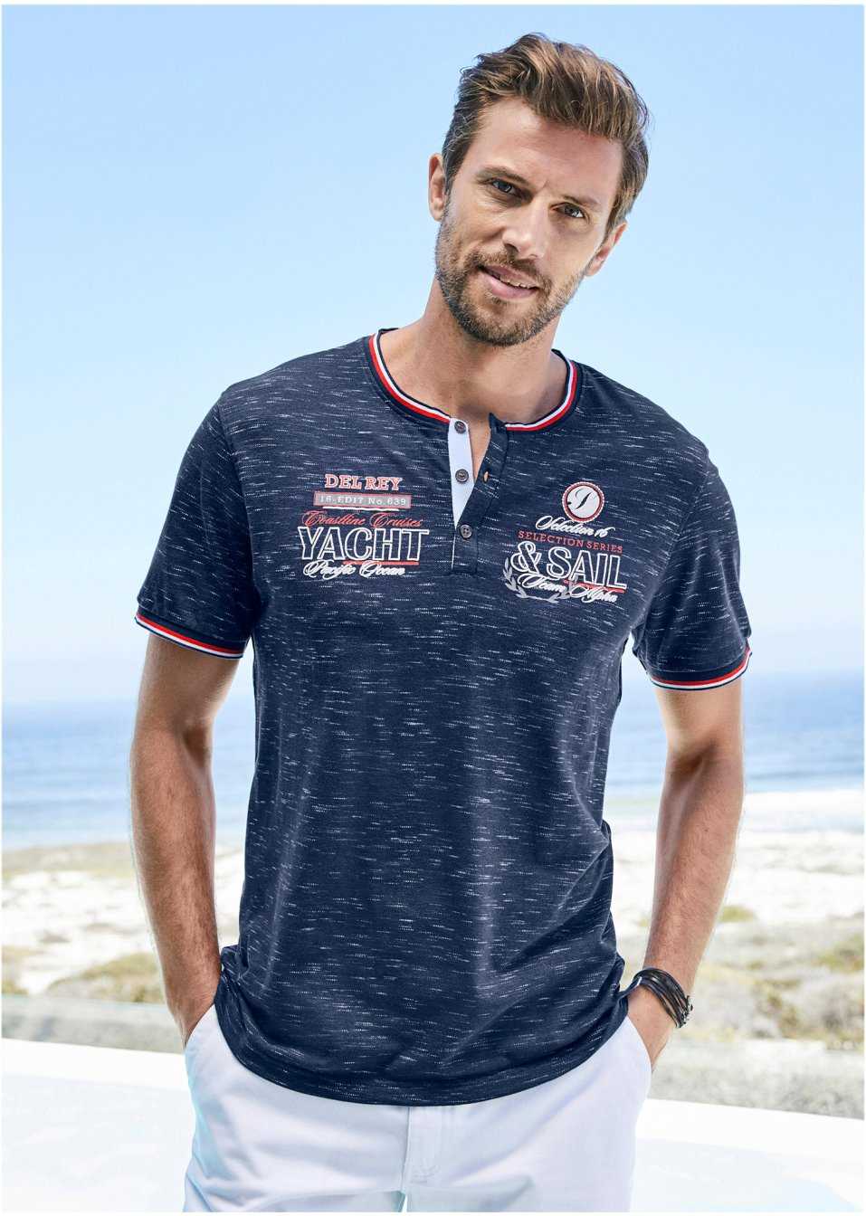 Хенли – еще один вид футболок для мужчин. Это простая модель с длинными рукавами, без воротника, но с глубоким вырезом на пуговицах. Чаще всего шьется из тонкого хлопка. Такую модель часто выбирают обладатели атлетической фигуры, комбинируя ее рубашками, кардиганами крупной вязки, жилетами, джинсами, вельветовыми брюками.