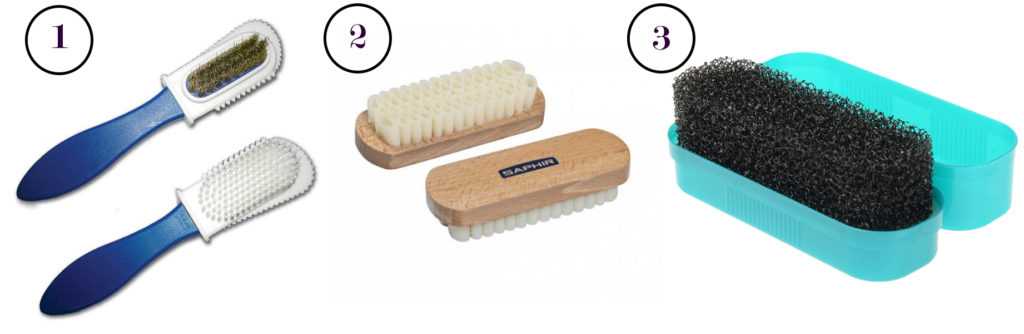 Залоснившиеся участки можно обработать смесью соды и молока либо простым канцелярским ластиком. Приподнимите ворс, тщательно вычешите его круговыми движениями и нанесите пропитку.