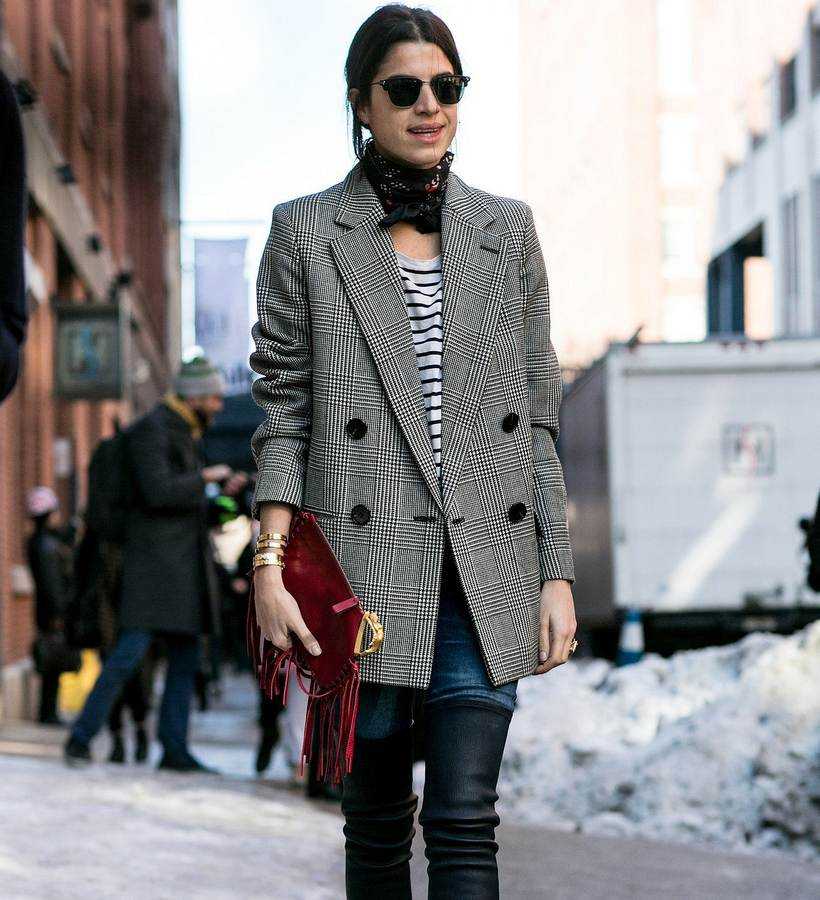 Клетчатый пиджак – универсал. В зависимости от рисунка он впишется и в деловой, и в уличный look. С ним хороши обтягивающие джинсы или кожаные брюки, трикотажные платья, юбки любой длины и фасона, чиносы.