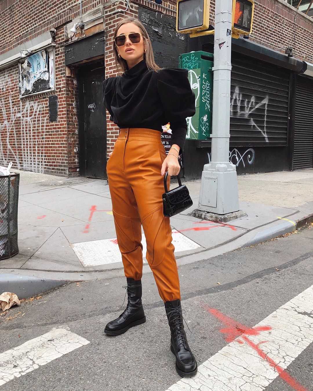 Еще одно модное сочетание; меховой жилет с кожаными брюками или юбкой.