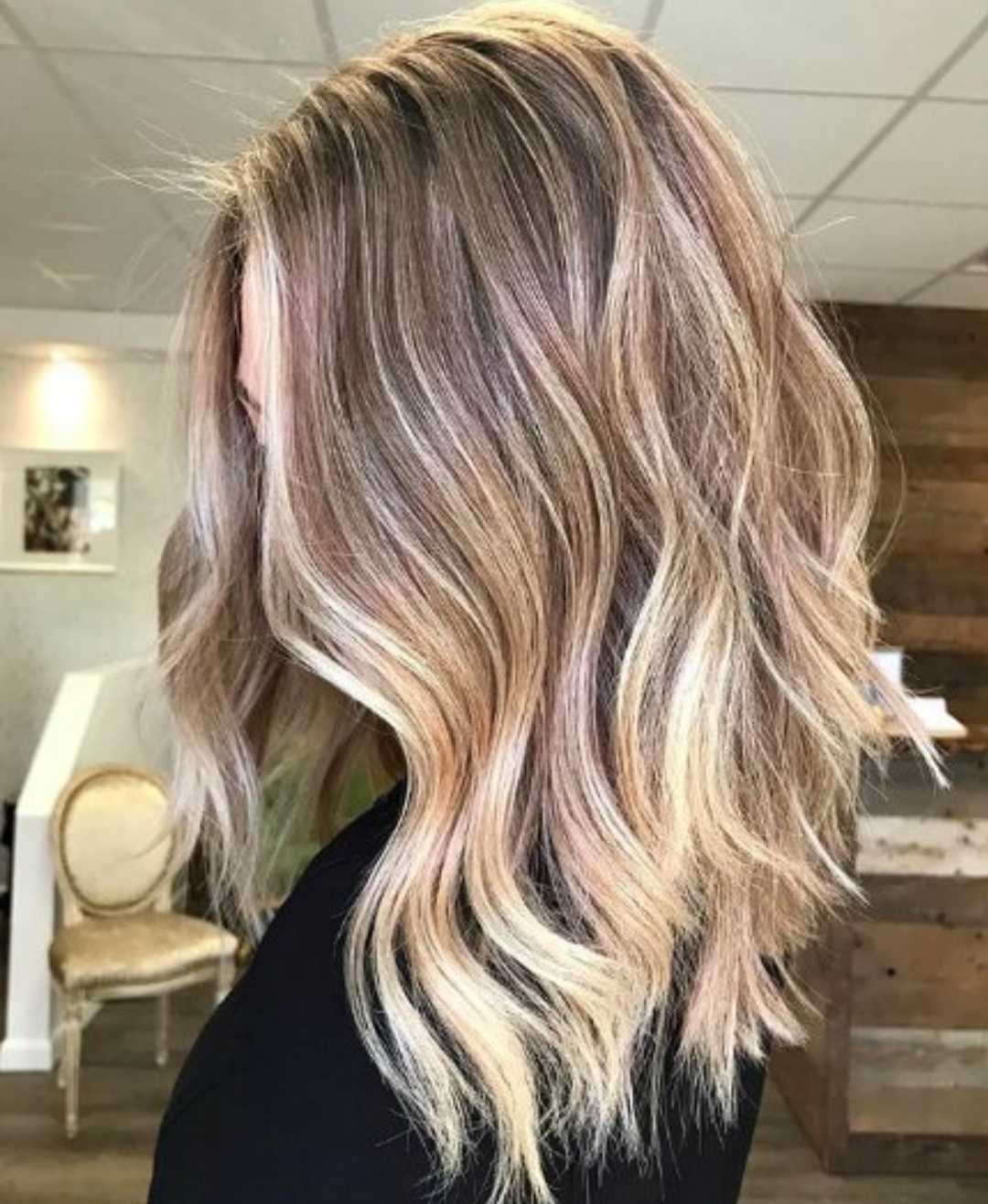 Техника идеально подходит крашеным блондинкам, которые ленятся постоянно обесцвечивать корни. При таком окрашивании корни будут оставаться темно-русого оттенка, но в этом случае желательно, чтобы мастер провел светлый тон по всей массе волос от самых кончиков. При балаяже граница между естественным цветом и окрашенным будет размыта, создавая плавный переход и придавая образу ультрамодный и актуальный вид.