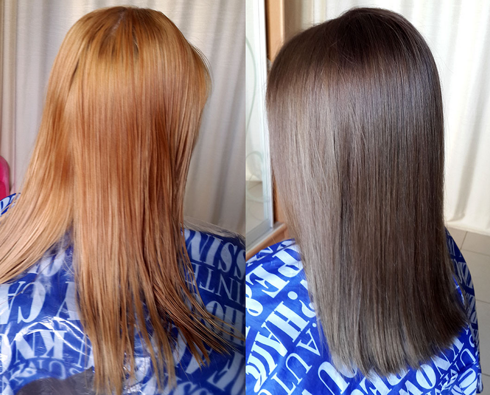 - Изменение тона локонов путем применения оттеночных шампуней или бальзамов.