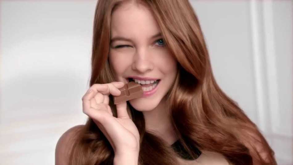 - Классический молочный шоколад имеет мягкие коричневые нотки, он имеет схожесть с карамелью, но рыжий заменен более насыщенными коричневыми тонами. Отличный вариант для светлой кожи и голубых глаз.