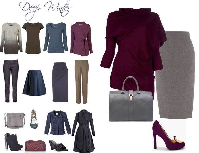 При этом лучше отказаться от применения теплых тонов – под запретом золотистый, коричневый, оранжевый цвета. Таким девушкам категорически не подходят пастельные оттенки. Идеальным вариантом станет сочетание контрастных цветов в образе, особенно это касается контрастной зимы, для которой характерны черные волосы и фарфоровая кожа.