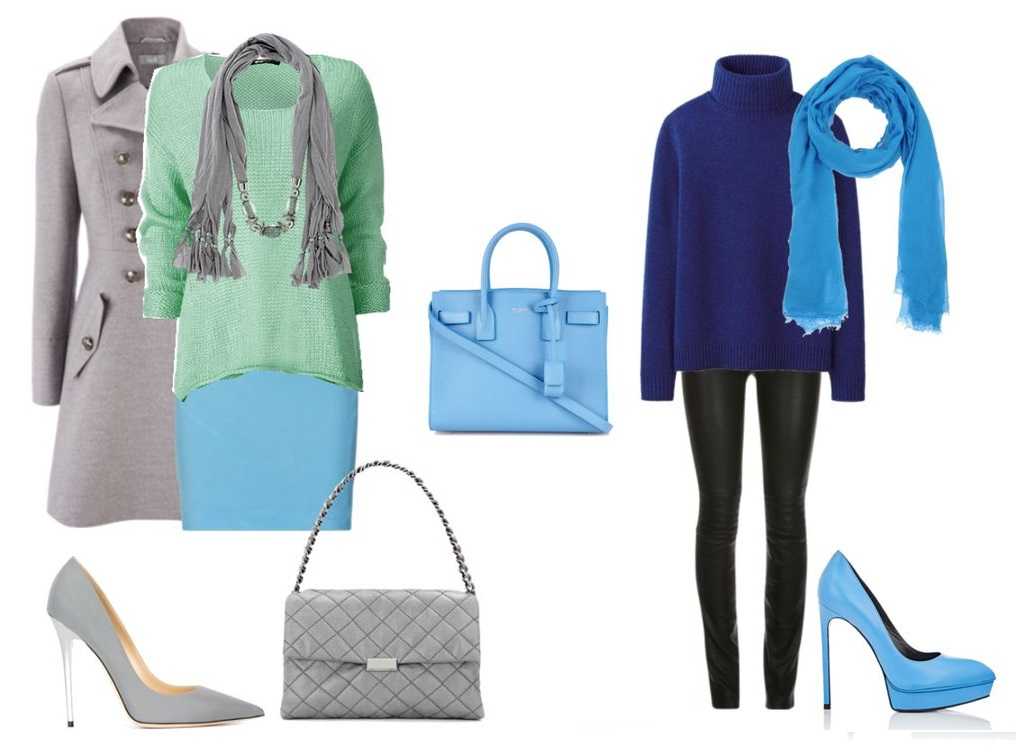 Гардероб подбирается только из холодных оттенков, с содержанием синеватого тона. Использование золотого, кофейного должны уравновешиваться основным, синим цветом. Коричневый должен содержать в себе розовый оттенок. Использование золота, лососины обесцветят холодный колорит.