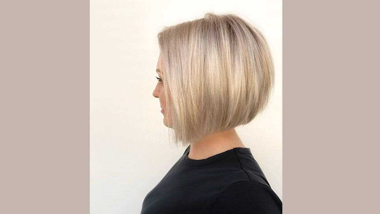 Отличительная особенность – на затылке пряди коротко состригаются, что позволяет открыть шею, а к височной области постепенно удлиняются и спадают вперед. Это популярный вариант, когда угол повторяет линию скул. Угол и желаемую длину волос озвучивает сама клиентка. Хорошо подойдет тем, кто желает визуально удлинить лицо или скрыть его грубые черты.