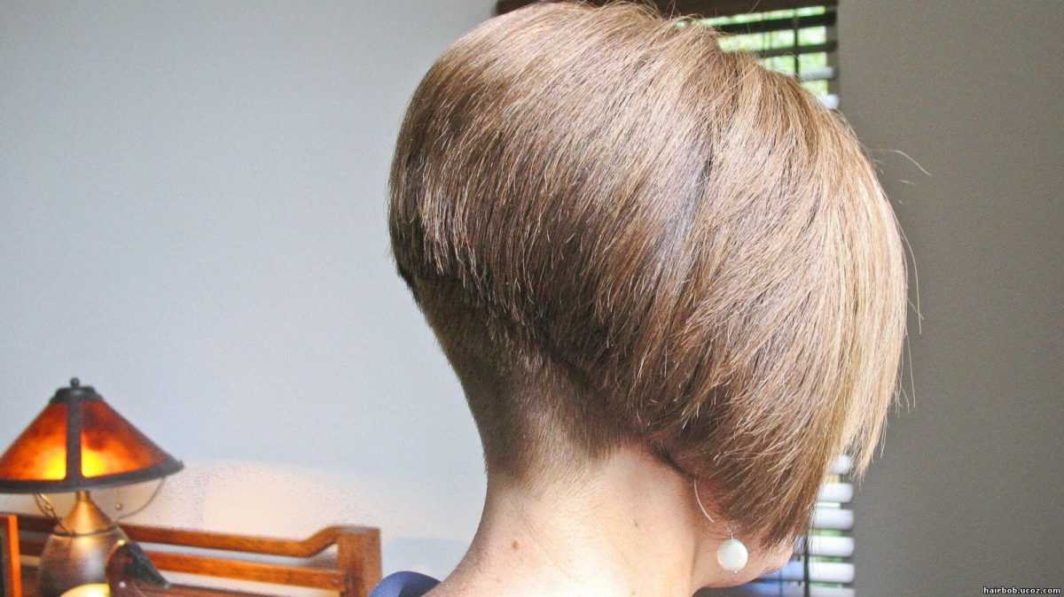Боб на ножке. При оформлении прически волосы на затылке состригаются до максимально короткой длины, а на теменной области создается объем.