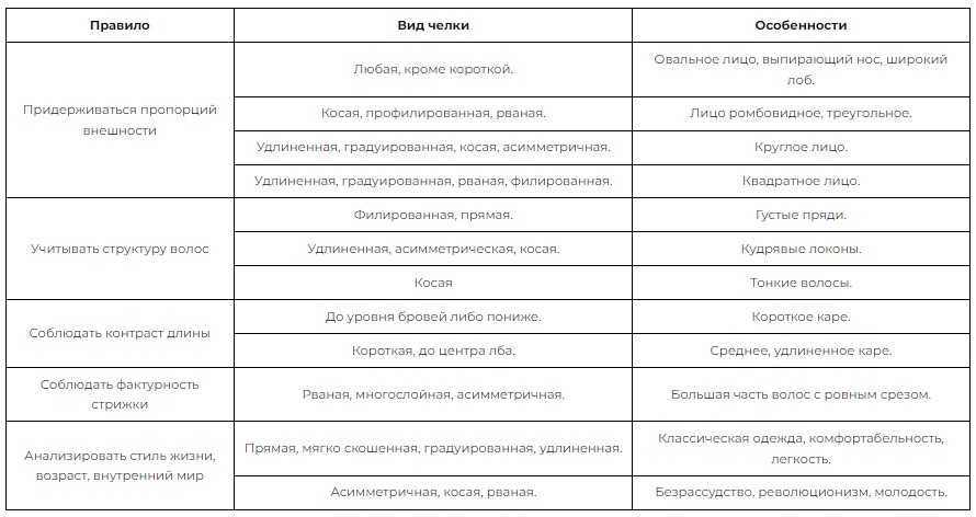 Зная свой тип лица, его достоинства и изъяны, при помощи каре возможно скорректировать внешность. Главным инструментом для этого выступит челка. Так, зрелым женщинам стоит выбрать мягкие контуры, а рваные концы и градуировка подойдут ярким, молодым особам. Прямая челка придаст образу загадочности, косая – освежит его, делая более оригинальным, смелым.