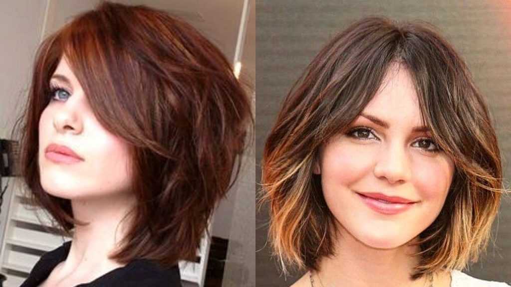 Для круглого лица идеально подойдут объемное каре, вариант с градуировкой, рваное каре. Здесь создается объем сзади, а спереди будут спадать удлиненные пряди, что помогает создать образ, который визуально вытягивает лицо и убирает округленность.