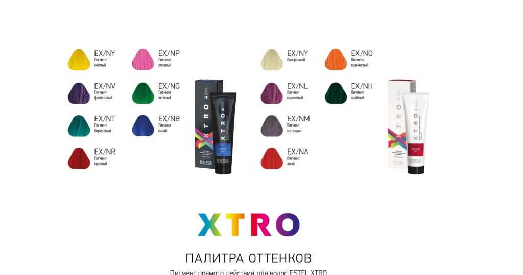 В палитре представлен один аммиачный корректор, который применяется для осветления и 9 цветных оттенков, включая нейтральный.