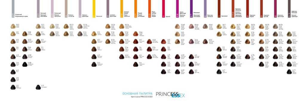 В палитре Estel Princess Essex все оттенки разбиты на группы, по цвету волос.