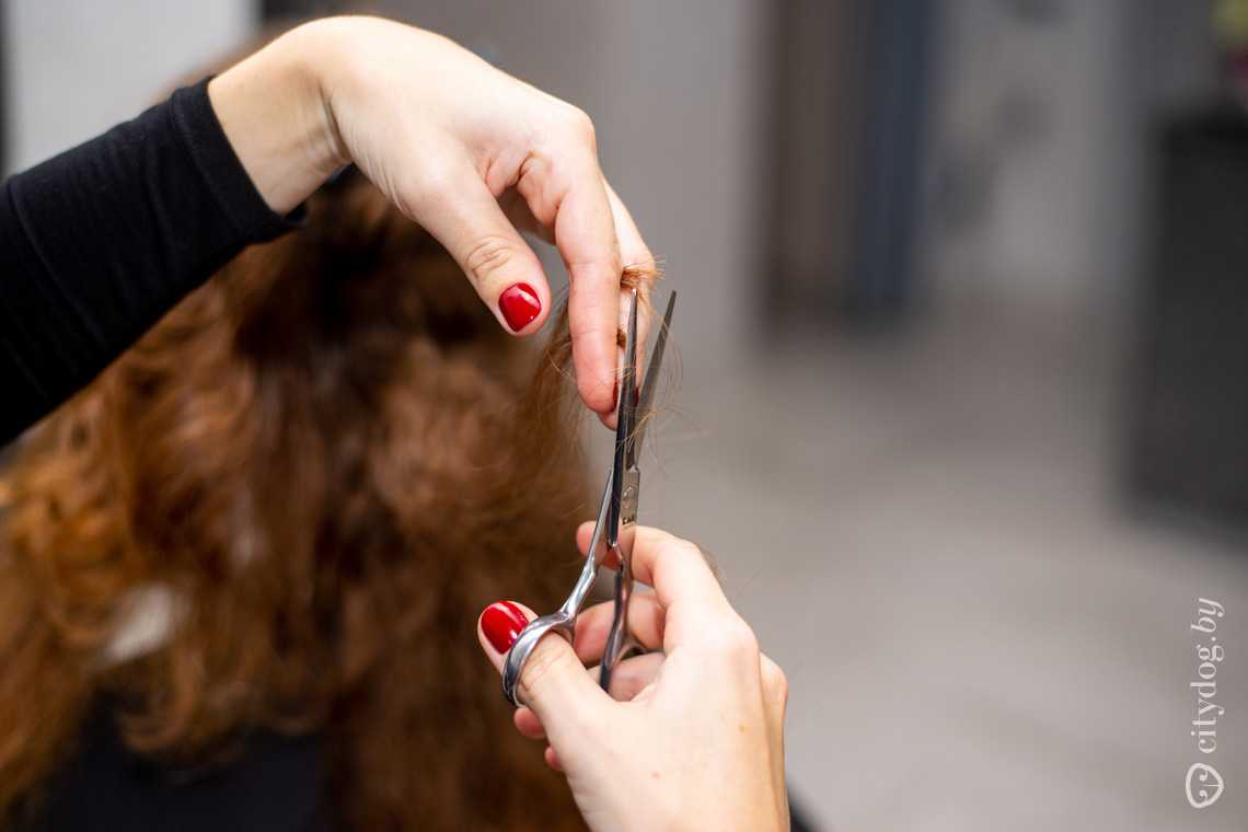 - Выбившиеся волоски следует аккуратно подрезать по всей длине локона, после чего кончик прядки подрезается на 1-2 см.