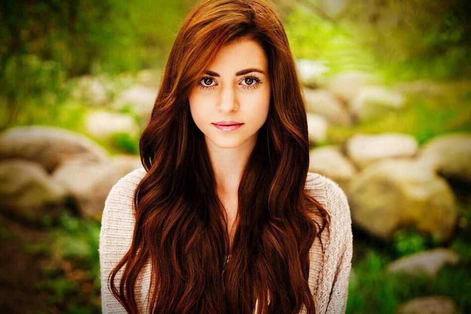 - Шоколадные волосы с рыжеватым переливом придают образу уверенности. Особенно он идет активным зеленоглазым девушкам, имеющим немного смуглую кожу. Наличие веснушек только приветствуется. Они идеально подчеркивают образ.