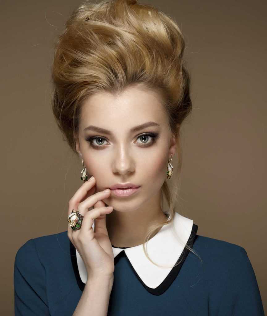 - С треугольной формой нежелательны невысокие укладки, которые становятся пышными в зоне висков, так как с ними лицо становится плоским. Хорошо подойдут варианты с пробором сбоку.