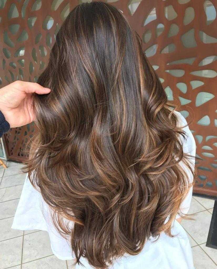 Балаяж. Вертикальная покраска будет выигрышно смотреться на темно-русых локонах. Покраска несколькими тонами дает игру тонов и очень красива. Используются медовые, рыжеватые, кофейные, шоколадные и каштановые цвета.