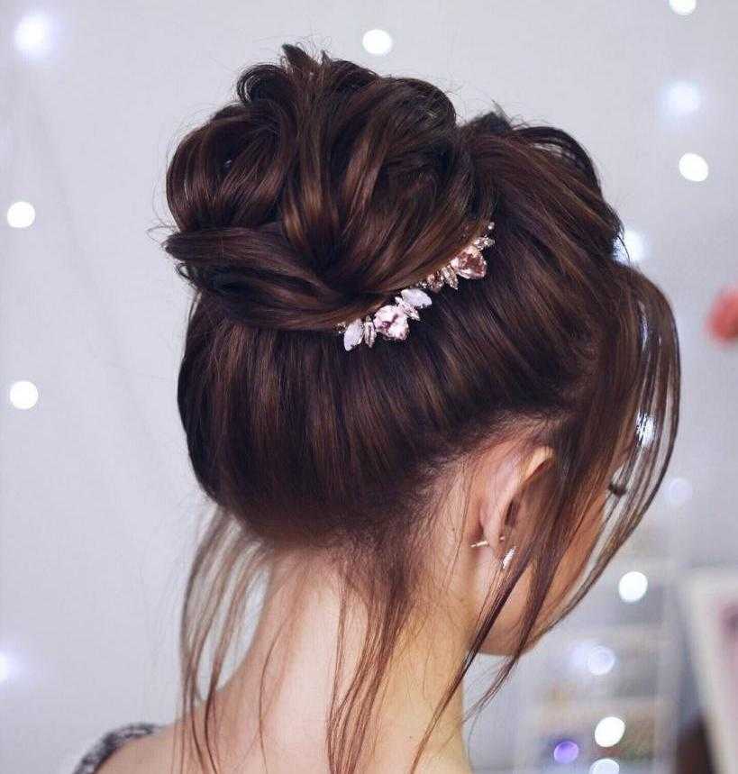 Для торжественного случая можно сделать вечерний пучок на голове с помощью бублика и украшений.