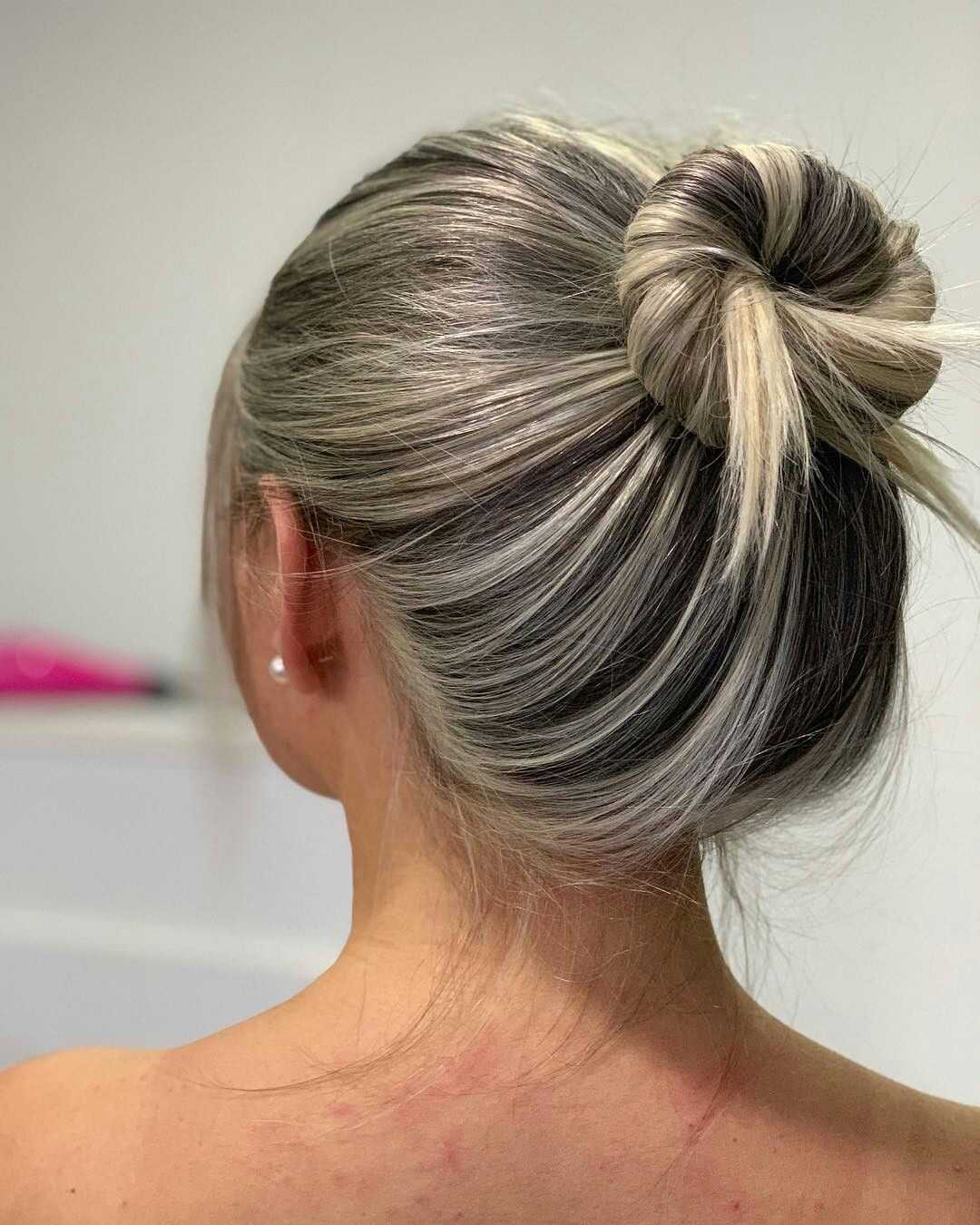 В этом варианте укладки крайне важно выбирать бублик точно в тон волос.