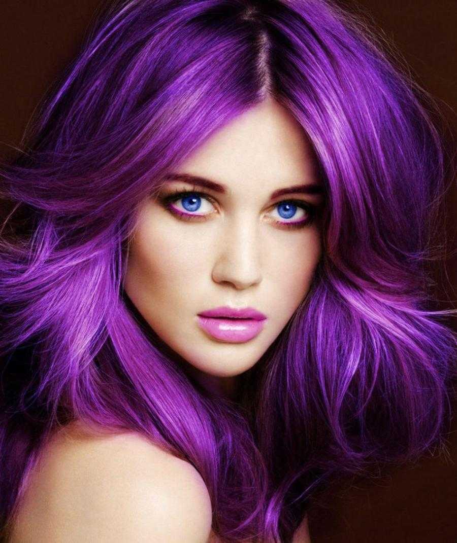 - Светлый фиолетовый. Этот цвет подходит для людей, которые не боятся выделяться в толпе. Длинные, слегка накрученные фиолетовые волосы вместе с голубыми глазами создадут невероятно нежный образ некой принцессы