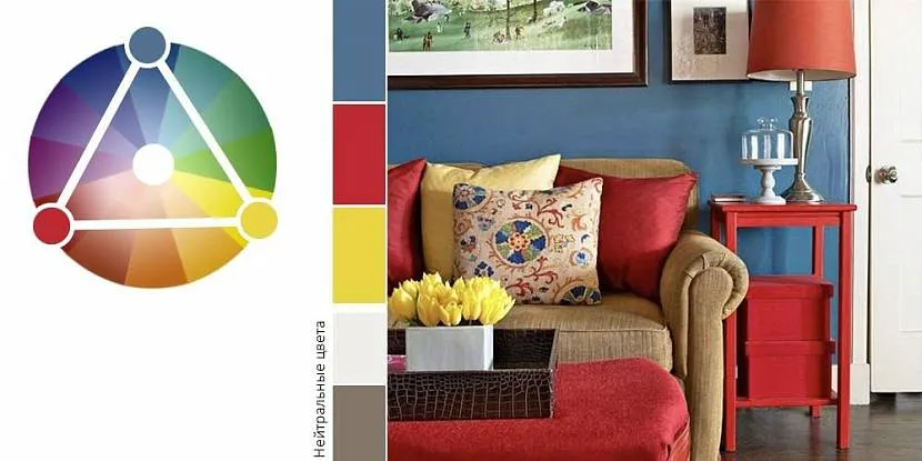 - Схема при классической триаде. За основу берётся один колер. Два других пригодятся для акцента.