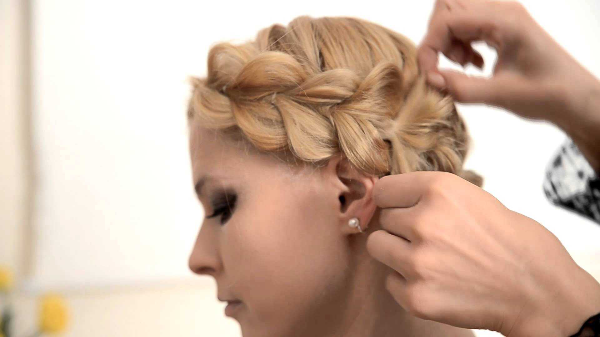 - Локоны сплести до самого конца, уложить на голове по кругу.