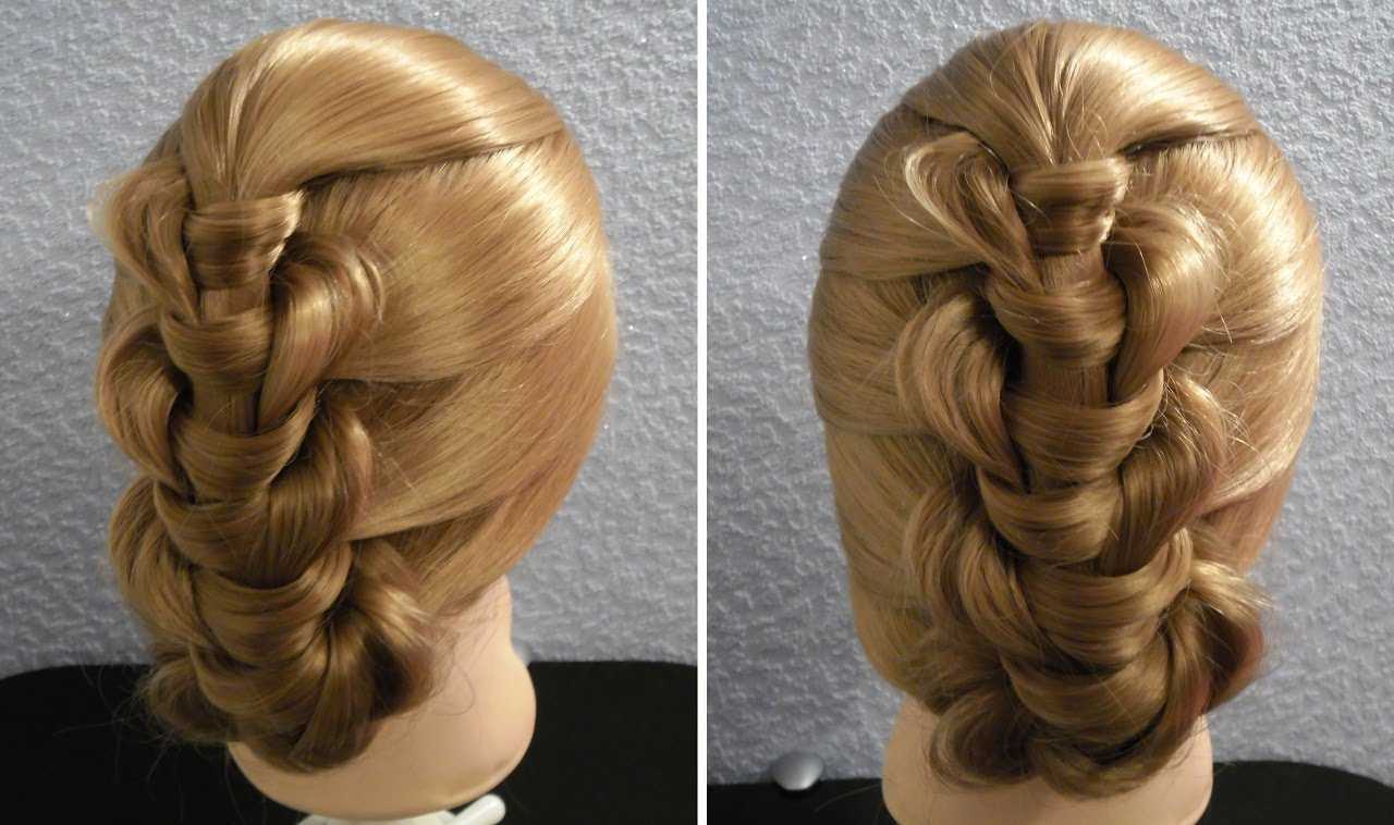 - Возьмите две получившиеся косы и завяжите их на простой узел на затылке. Если у вас длинные волосы, завяжите несколько узлов