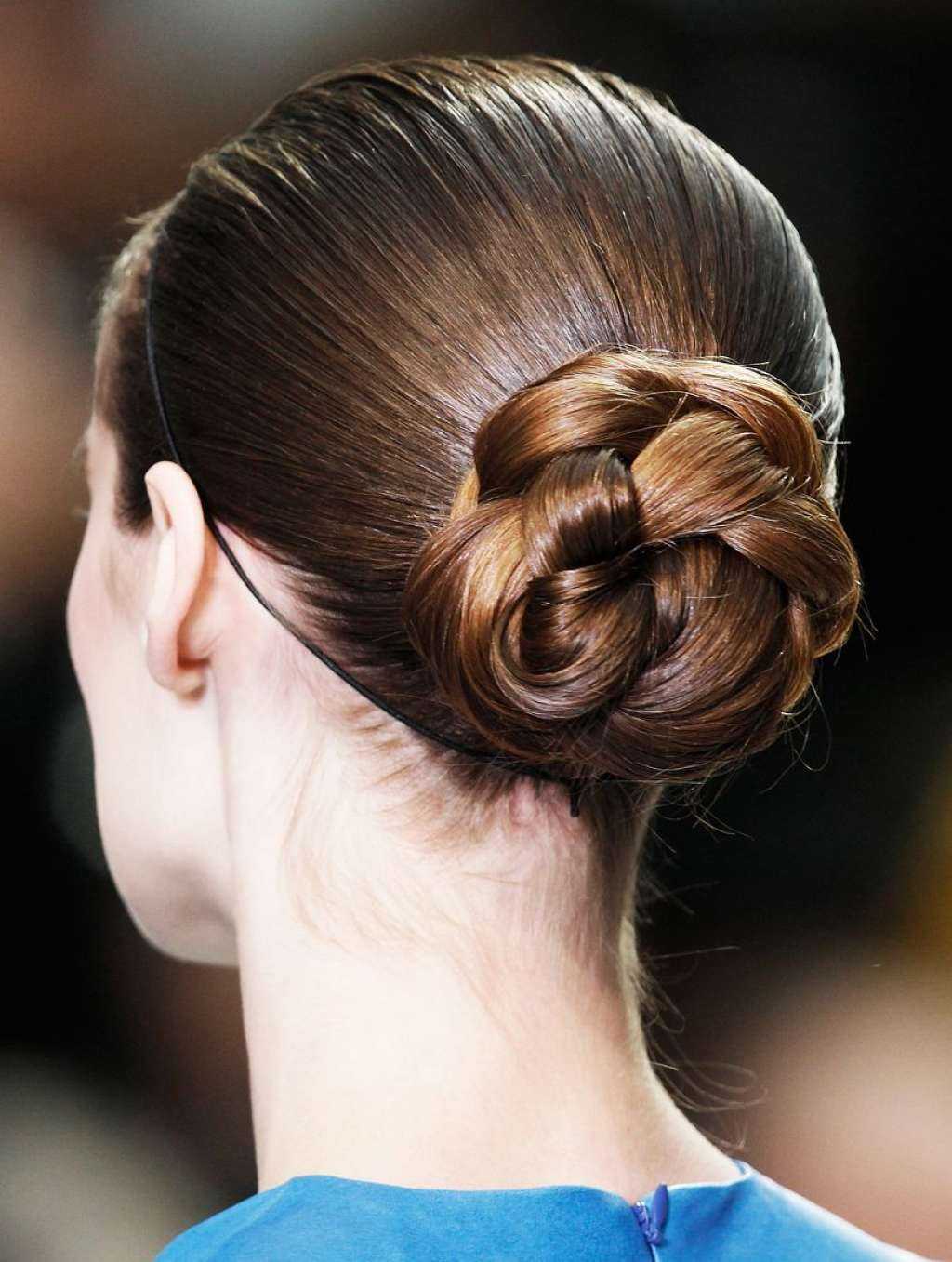 - Тугой и аккуратный пучок красиво смотрится на стройных невысоких женщинах.