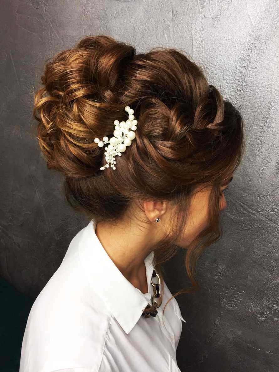 О начесах говорилась во многих видов пучка, однако данный вариант создается для более фундаментальных причесок. Он подходит для взрослых женщин, однако в последнее время широко любим у молодых невест. Пучок с начесом – одна из самых популярных на сегодняшний день видов свадебных причесок.