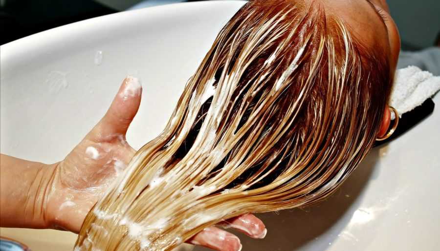 - Смывают 2 раза шампунем с кислым ph.