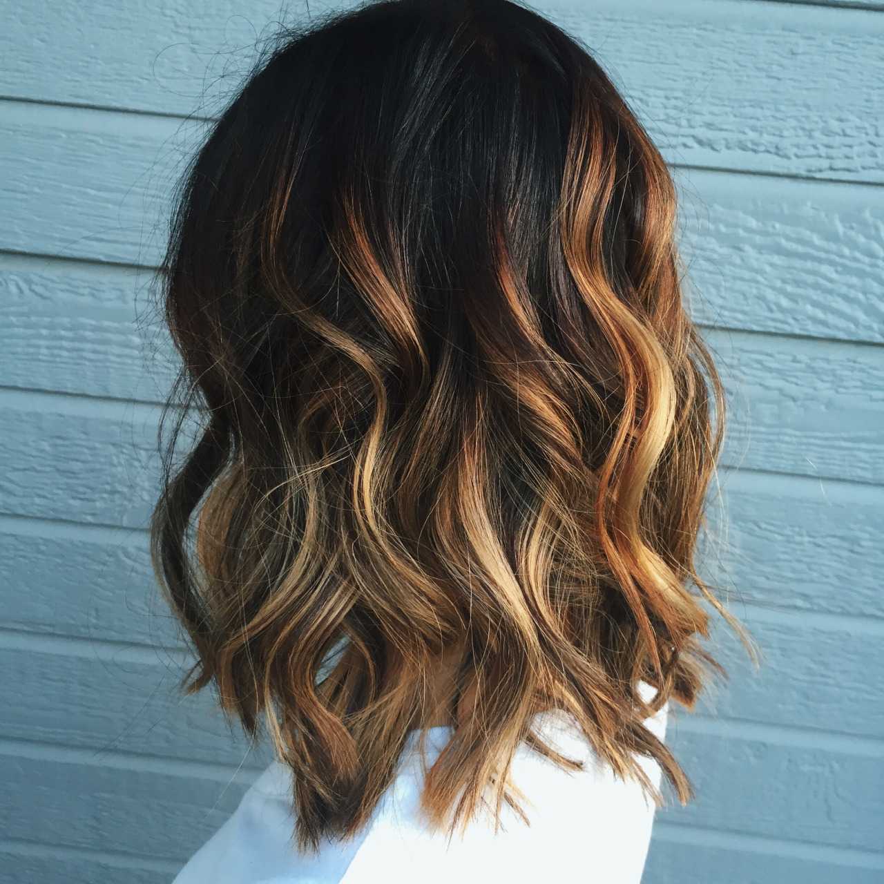 Вы можете выбрать классический образ с волнистыми кончиками, который начинается с вашего естественного темного цвета и заканчивается золотисто-персиковым оттенком. Эта красивая прическа длиной до плеч с бронзовым эффектом персикового цвета, безусловно, прекрасна. В нем есть немного ленивое чувство «я — икона моды».