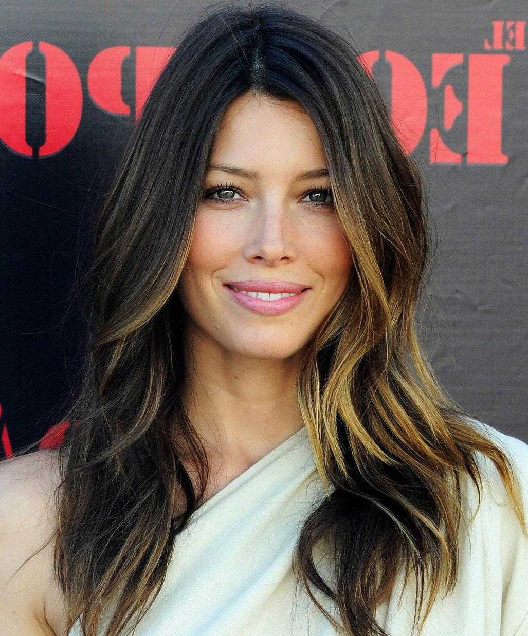 Волосы делятся на 3 широкие полосы по горизонтали. Прикорневую часть делают самой темной, следующую — более светлой, а для кончиков приберегают эффект выгоревших прядей;