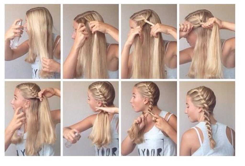 Если классическая техника плетения французских кос оказалась вам не под силу, то не нужно отчаиваться. Сделать шикарную косу вам помогут обычные резиночки. Такую косу можно украсить яркой заколкой или необычной резинкой. Подобные прически пошагово представлены на фото ниже.
