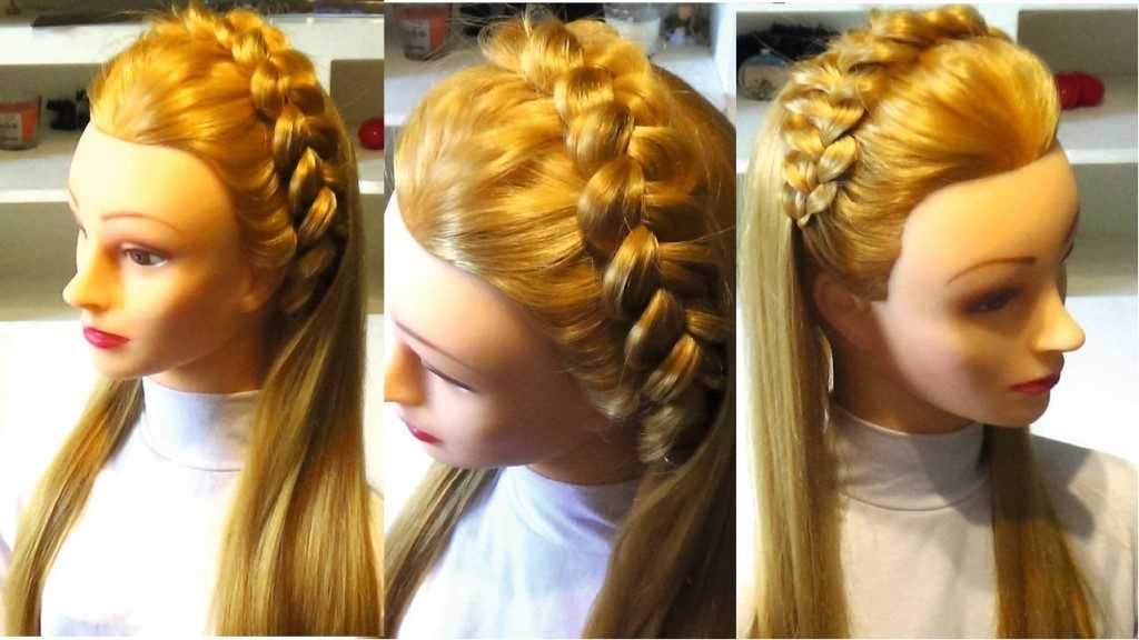 Это легкая прическа на длинные волосы на праздник. Чтобы соорудить ободок, нужно сделать горизонтальный пробор от уха до уха и начать плести косу сбоку. Французская коса должна быть с подхватами. Также есть второй вариант: волосы делят на прямой пробор и с обеих сторон заплетают косички (они должны плотно прилегать к голове). Из них формируется ободок, а концы кос можно закрепить в виде небольшого пучка.