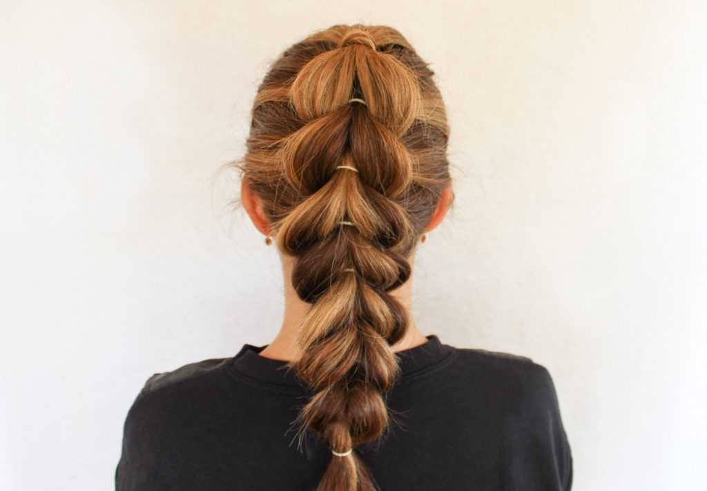 Все что нужно это тонкая резинка и пару невидимок или шпилек. Собираем в высокий хвост и на последнем обороте резинки не протягиваются до конца. Оставшийся конец хвоста нужно обмотать вокруг основания хвоста. Такой вариант подходит как для средней длины, так и для очень длинных. В случае длинных, их нужно будет несколько раз обмотать вокруг полученного пучка и хорошо закрепить невидимками. Такой пучок может стать отличный вариантом для тех, кто ищет простые прически на средние волосы и длинные.