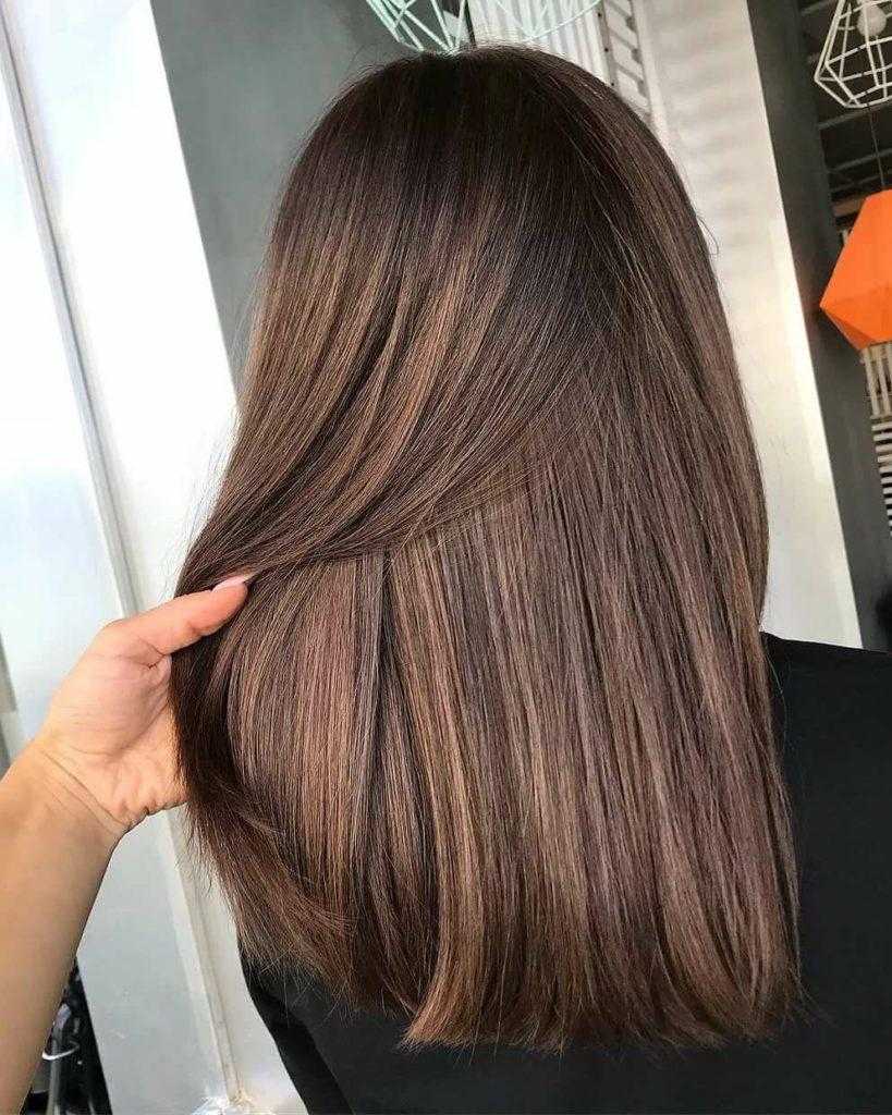 - шоколадно-пепельный – холодный, интересный цвет, достигающийся с помощью специальных техник окрашивания (представлен на фото ниже).