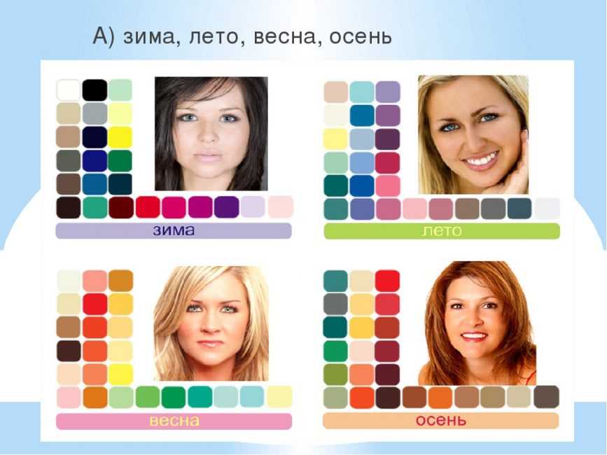 Каждого человека стилисты могут отнести к одному из четырех цветовых типов внешности, соответствующих временам года. Краткие особенности каждого типа можно увидеть в таблице: