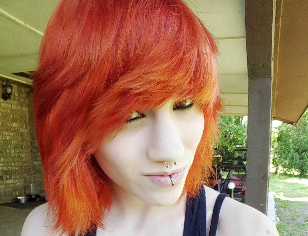 Для яркого цвета локонов и треугольного лица надо выбирать длинную, густую косую челку, и многослойную, пышную стрижку, тогда вы скроете все недостатки внешности. Даже привлекающий, рыжий цвет не подчеркнет ваш узкий подбородок. Все будет смотреться эстетично.