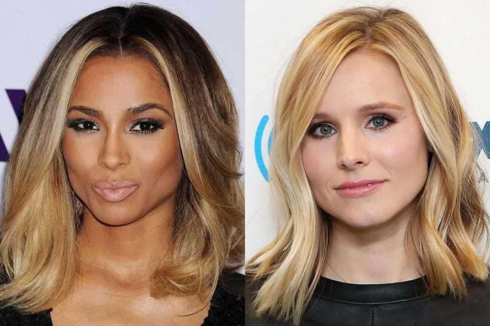 При выборе оттенка шевелюры рекомендуется обратить внимание на светлые тона. Визуально удлинить верхнюю треть лица поможет стандартное вертикальное мелирование