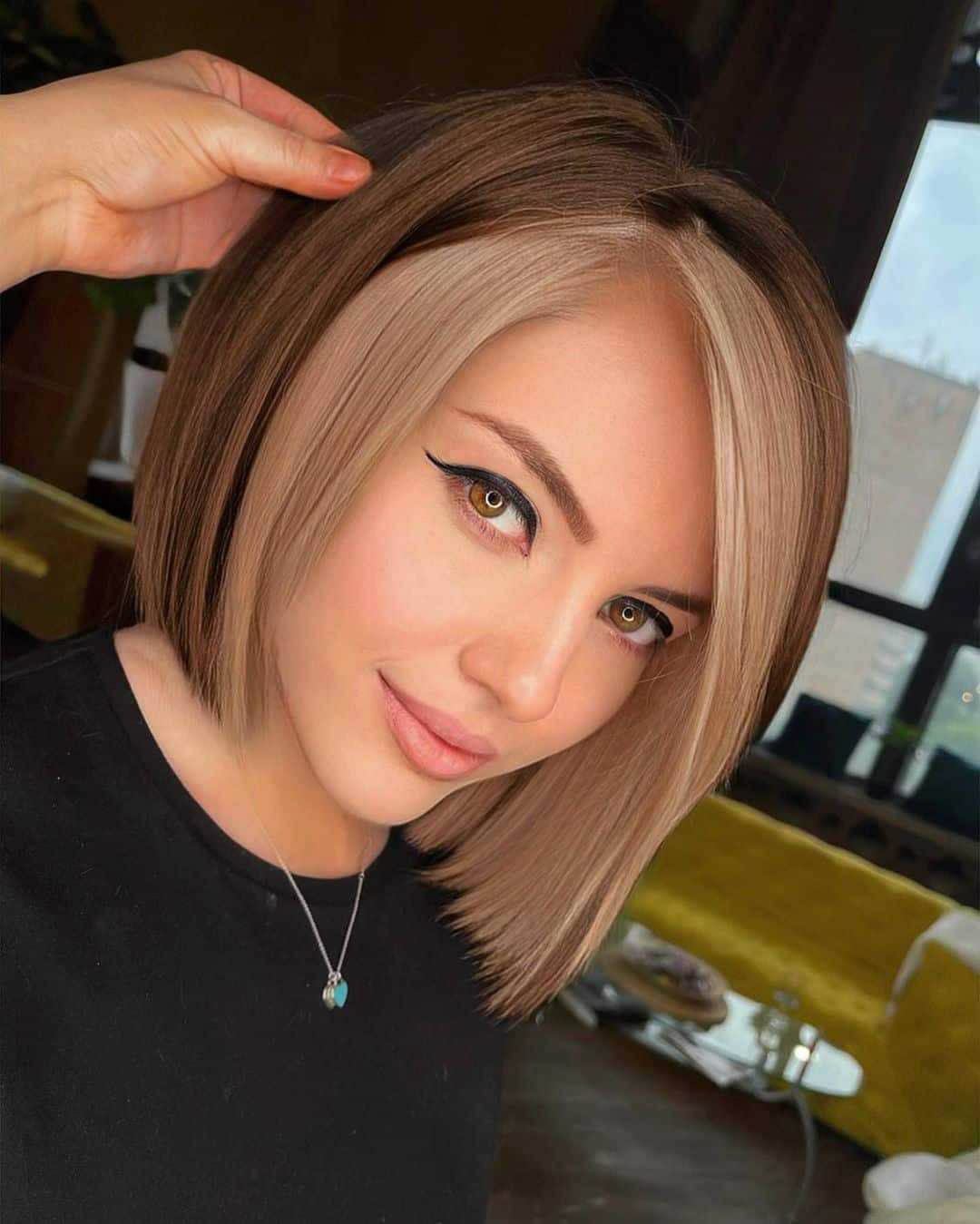 Необычно и свежо на темно-русых волосах смотрятся контрастные светлые пряди. Техника их нанесения, как и количество, зависит от пожеланий клиента, длины волос и их состояния. Это может быть как классическое мелирование, так и современные методы окрашивания, в том числе асимметрия или растяжка цвета.