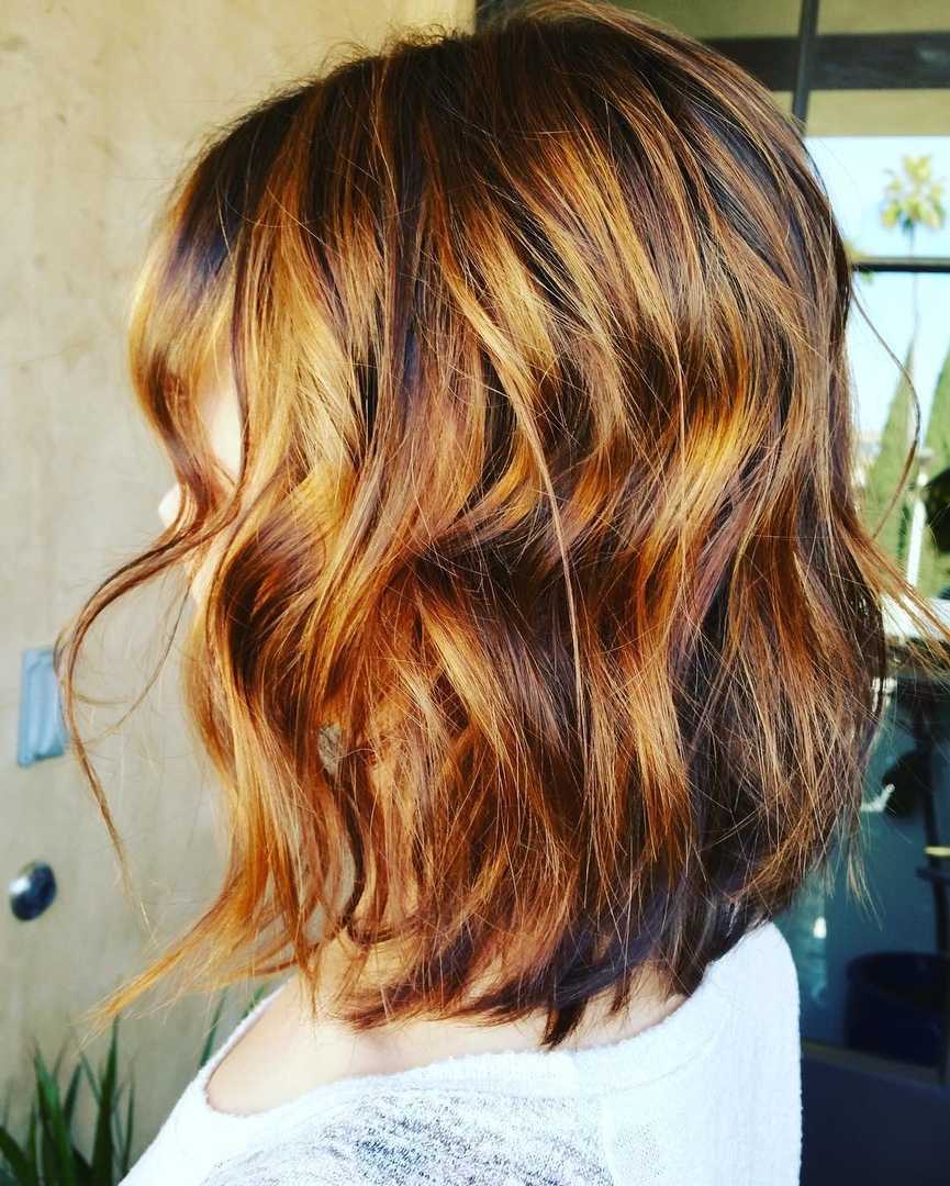 Шатенки, русоволосые и обладательницы рыжих волос смело могут делать переход от природных оттенков в янтарные, карамельные, медовые, кофейные и шоколадные. Можно растягивать цвет в сторону золотистых, красноватых и медных тонов.