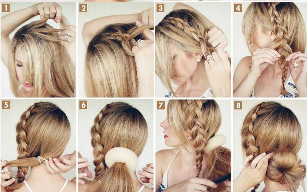 Вот как выглядит процесс пошагово: сначала наносится мусс или гель. Затем копна делится на две одинаковые секции при помощи заостренного конца расчески. Переплетаются между собой по две пряди вплотную к голове, постепенно захватываются новые части. Аккуратно добавляется одна петлю над другой, укладывается масса волос.