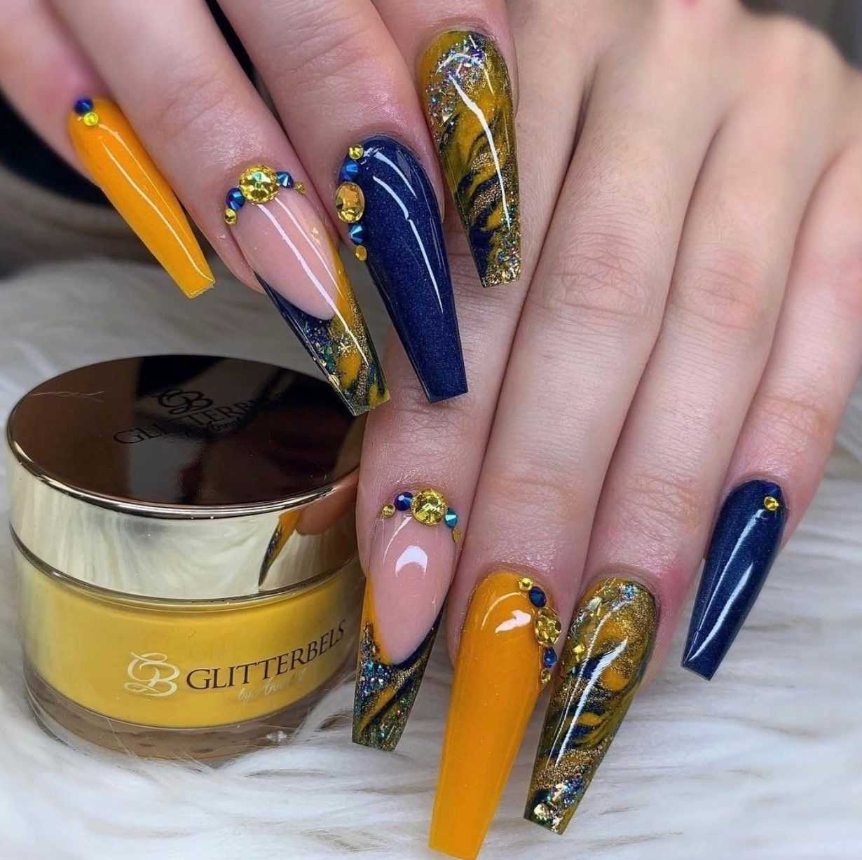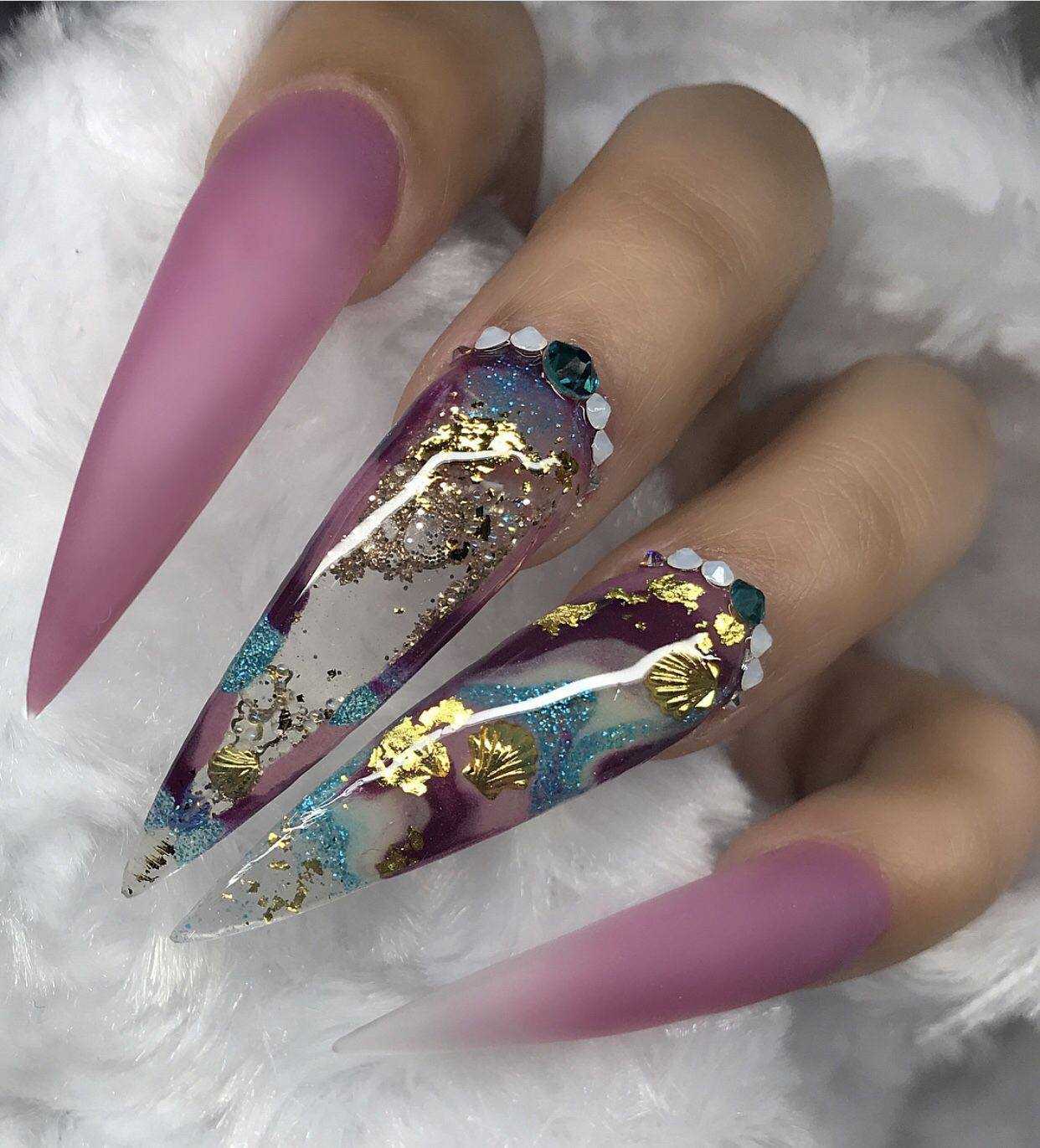 Задекорировать акриловой пудрой ноготок для аквариума – смелая и оригинальная идея. Хорошо сочетается такой декор с другими, более объемными элементами. Использовать лепку для натуральных ногтей не стоит, так как много геля уйдет на заливку и маникюр будет выглядеть не эстетично. Пудру же допустимо использовать для любых вариантов основы: натуральный ноготь, типс или нарощенный.