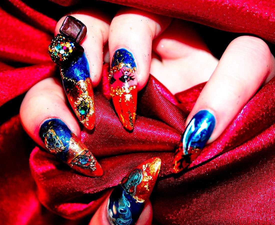 - Самодостаточность. Такой маникюр настолько необычен и оригинальный, что привлекает сторонние взгляды в разы чаще, чем дорогостоящие украшения на руке. Можете отказаться от них, оставаясь постоянно в центре внимания.
