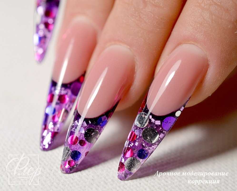 - Формируется свободный край выбранной формы. Нюансы технологии зависят от выбранных материалов: геля или акрила.