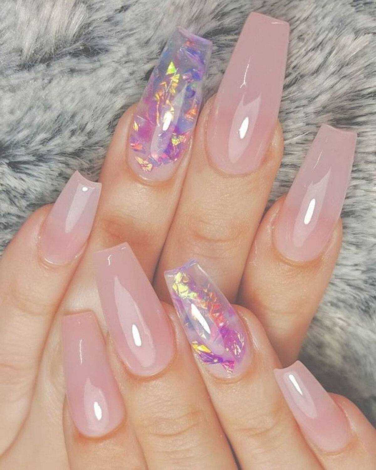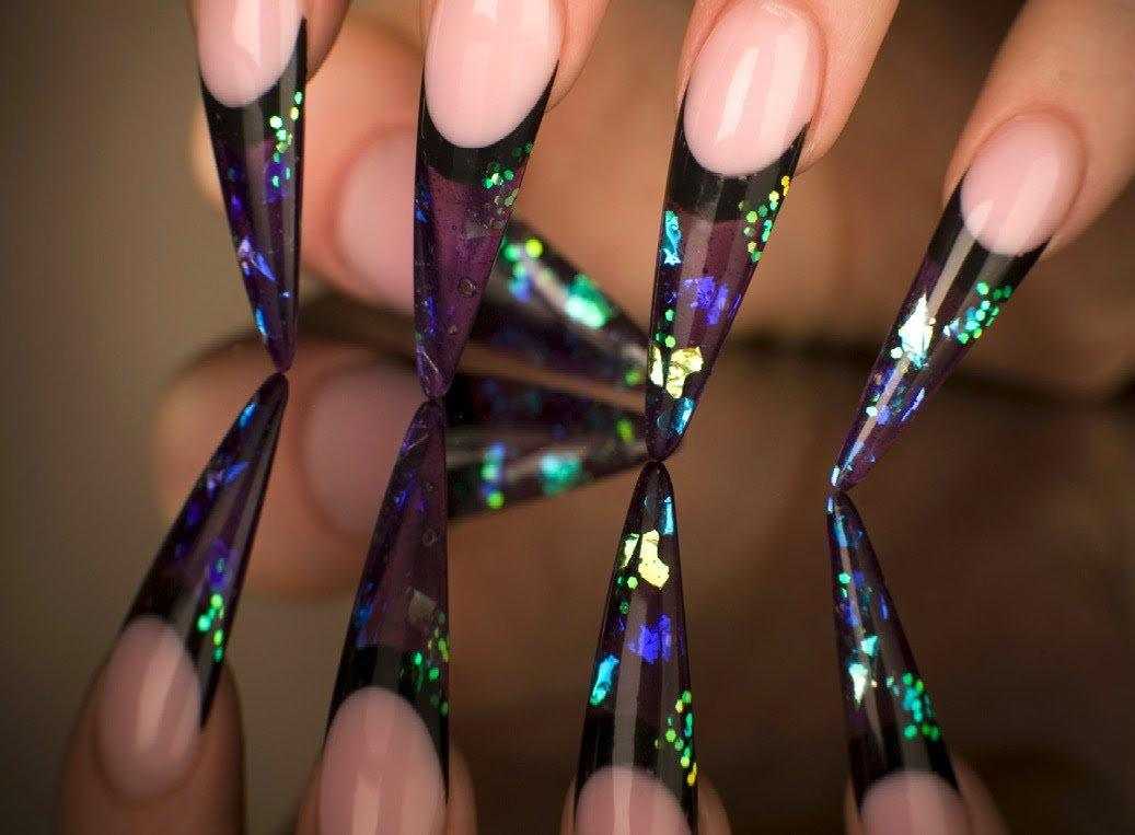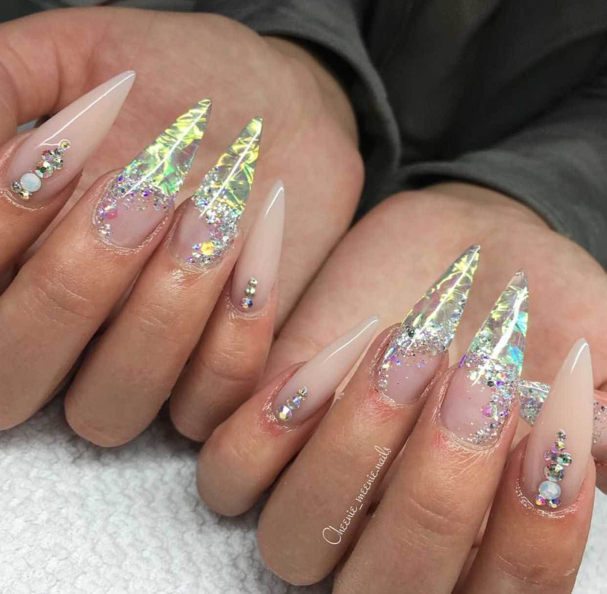 Этот декоративный прием допустим для натуральных и искусственных ноготков, так как не делает значительно толще ногтевую пластину, при этом дает великолепный блеск.