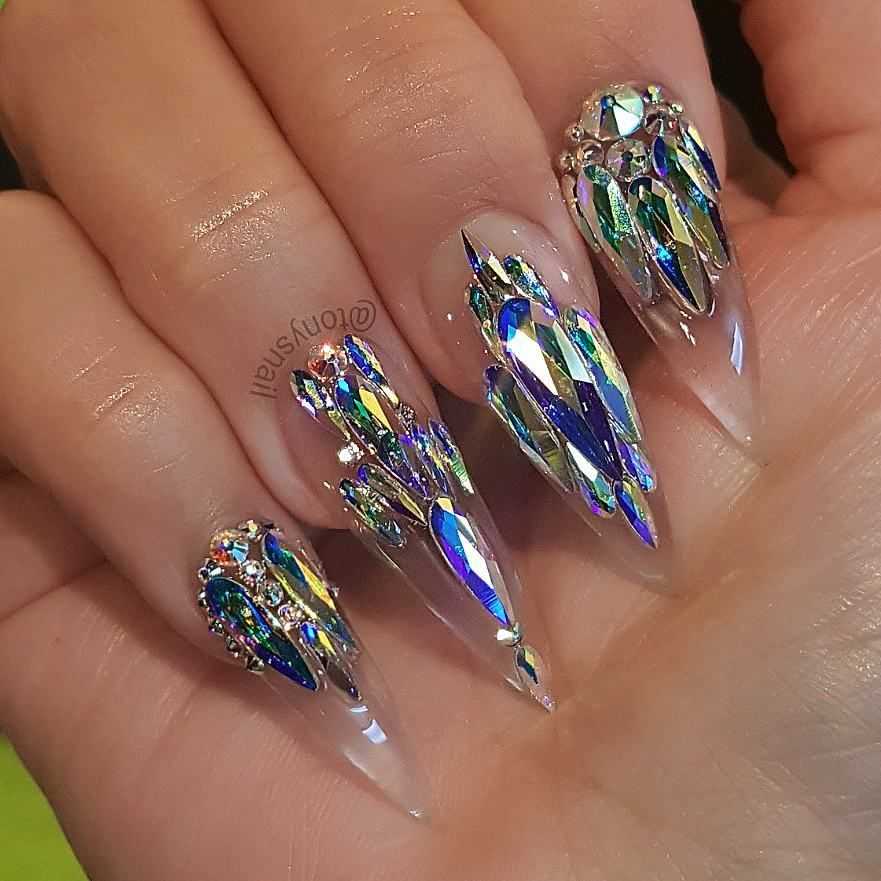 Для такого декора требуется большой слой геля, поэтому актуально применять подобные украшения на нарощенных ногтях или на основе типс.
