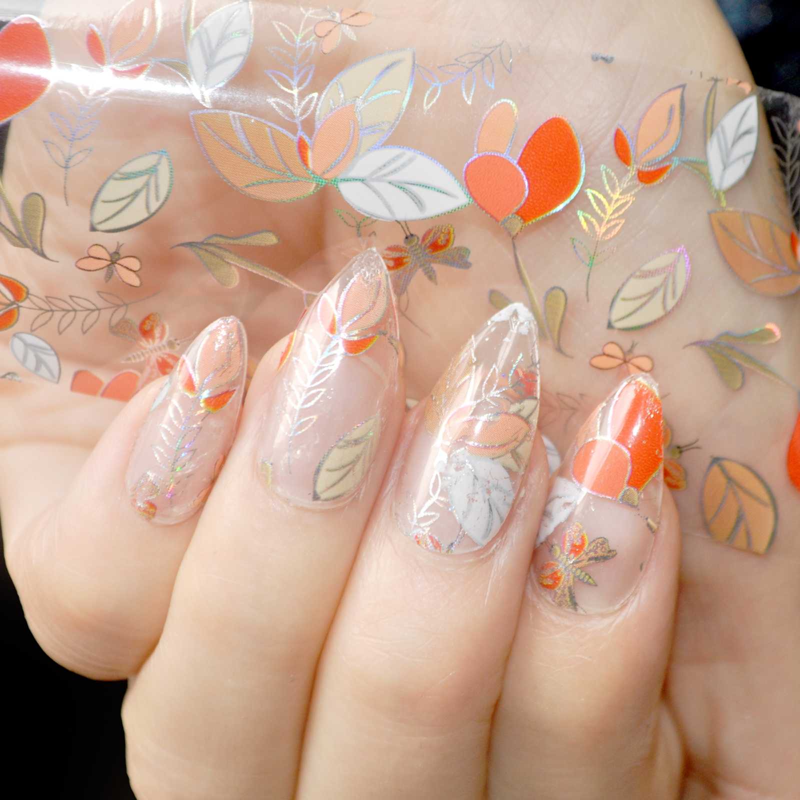 Маникюрная фольга имеет разную плотность и назначение. Один вид (переводной) оставляет блестящий след на липком слое, второй – нужно сначала формировать и располагать на ногте как аппликацию. В зависимости от необходимого эффекта выбирают один или второй вид фольги.