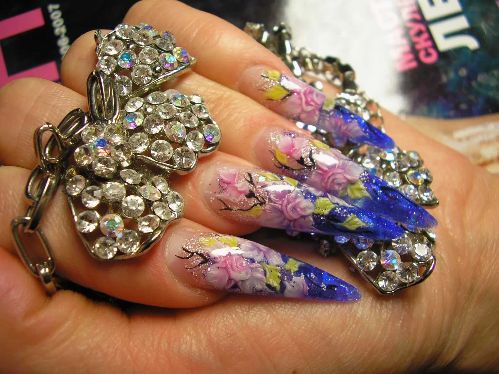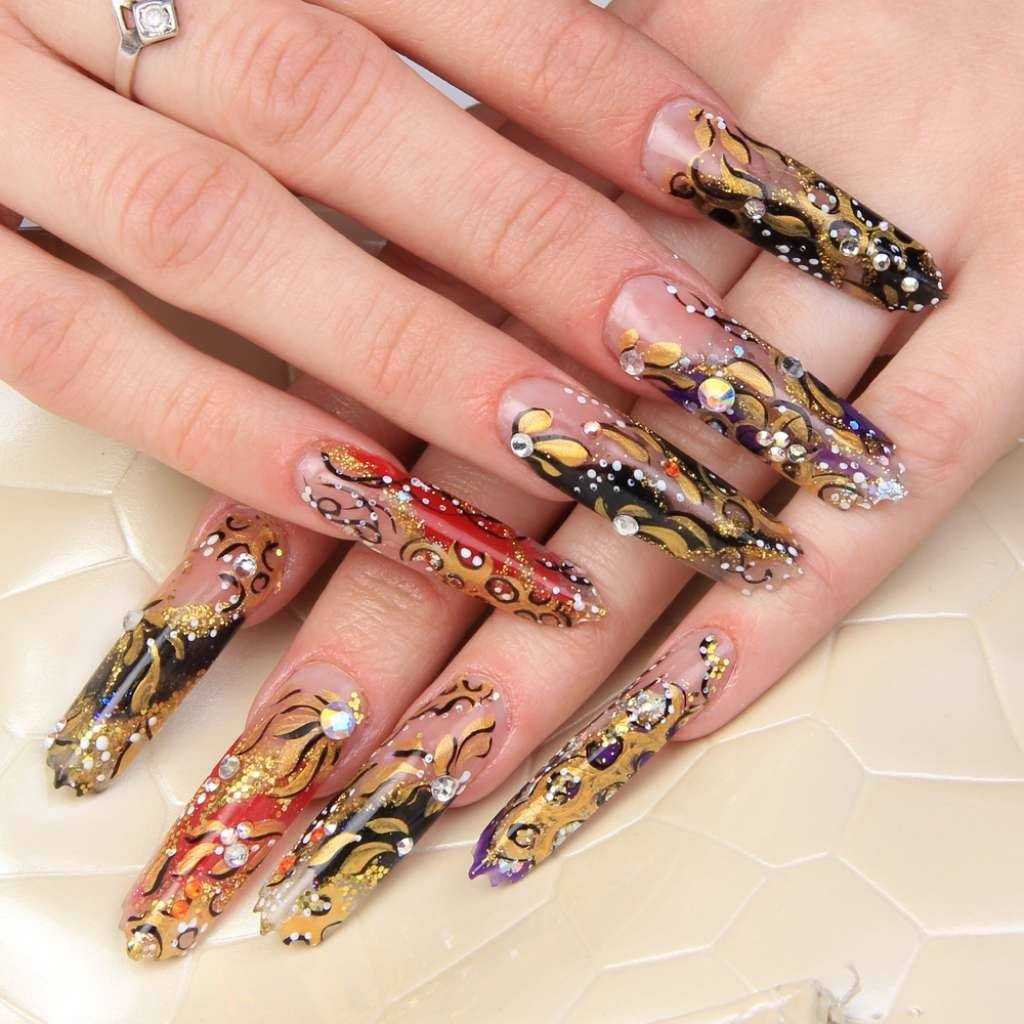 На таких ногтях очень удобно творить дизайн в виде лепки и прорисовки. Чем больше их длина, тем больше места для реализации художественной фантазии.