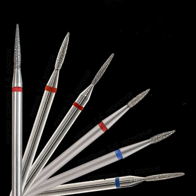 Инструмент такого плана подходит для аппаратной обработки валиков и раскрытия синусов. Их предпочтительнее использовать опытным мастерам, потому что начинающие могут нечаянно поранить клиента. Человек, который хорошо умеет делать аппаратный маникюр и педикюр, сможет с их помощью укоротить свободный край ногтя, придать ему форму, снять искусственное покрытие и выполнить множество других задач.